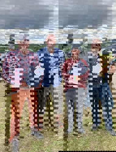 Från Vänster: Kulturstipendiat 2025 - Jörgen Stenberg, Allmänna utskottets ordförande Lennart Gustavsson (V), Årets Landsbyggare 2025 - Käbi och Adrian Bergsten.